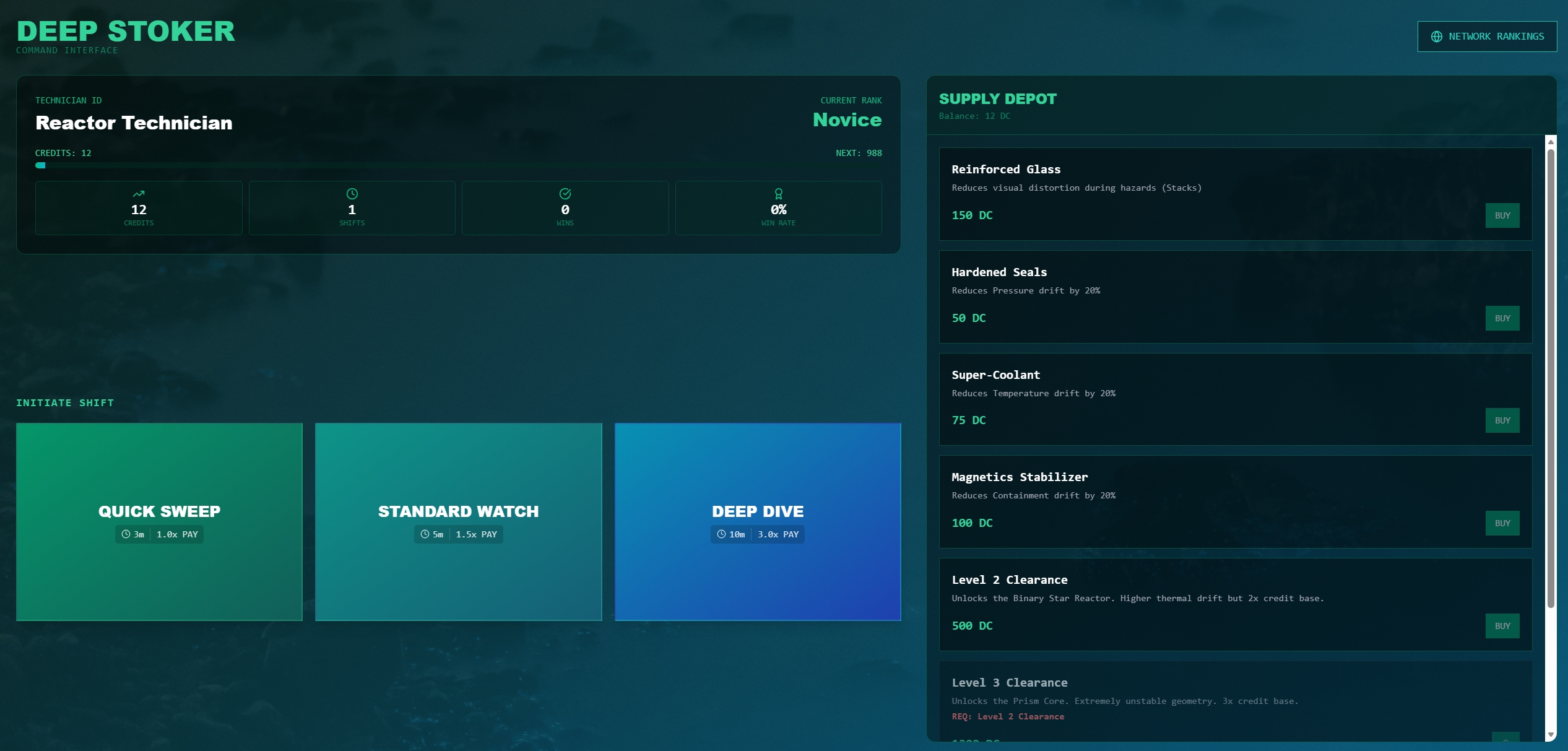 Deep Stoker is an atmospheric management simulation about finding the perfect balance between "Maximum Efficiency" and "Total Meltdown."
